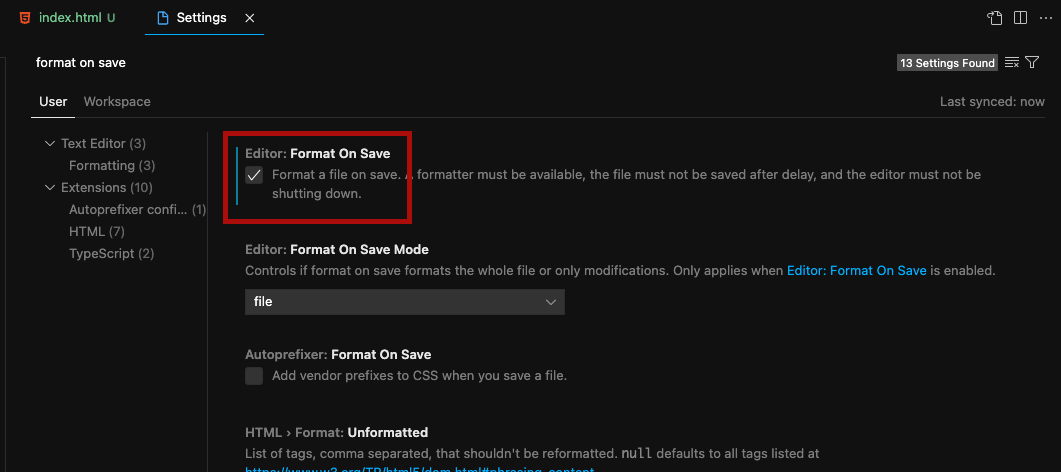 그리고 상단 검색창에서 default formatter 와 format on save를 검색해서 옵션을 바꿔주면 된다.